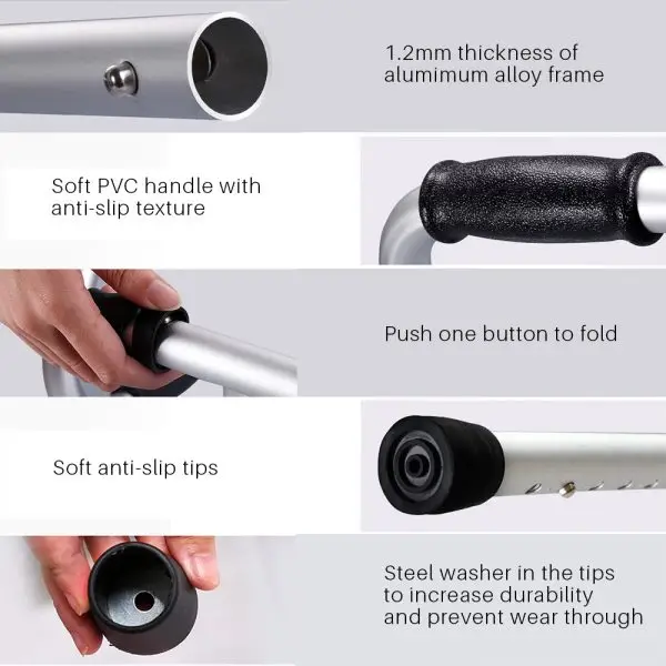 The lower handle position allows users to push up safely from a seated position, while the upper handles provide comfortable support when standing or walking. This makes transitions between sitting and standing more controlled and less demanding.