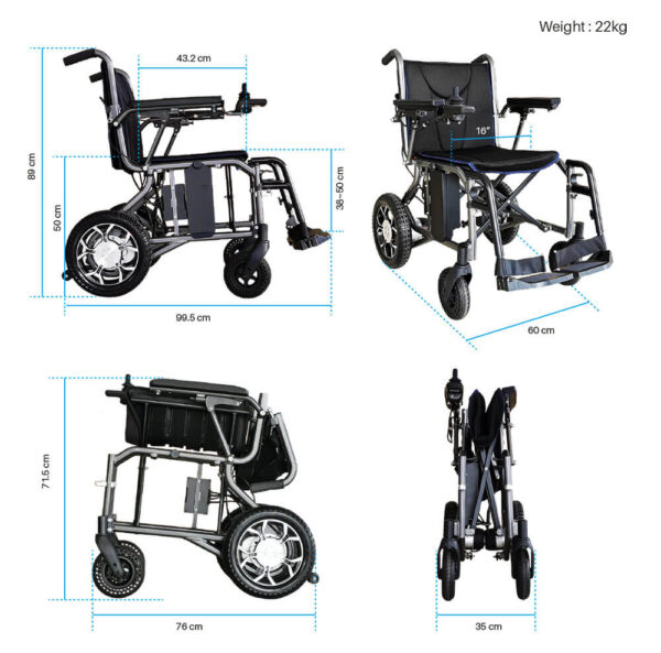 - Seat height at 51.5 cm, which is a more appropriate seat height. (You probably noticed most of the portable power wheelchairs in the market have much lower seat height)