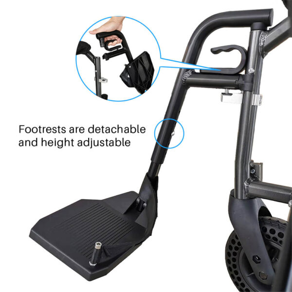 - Detachable and length adjustable footrests, and the footrests are foldable.
