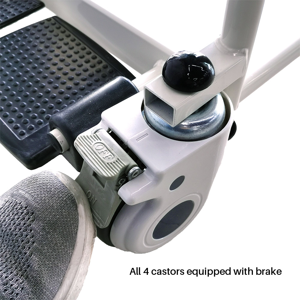 Comes with four quality castor wheels, each with individual brakes for safe stopping during use or transfers.