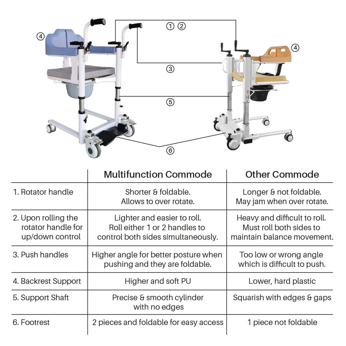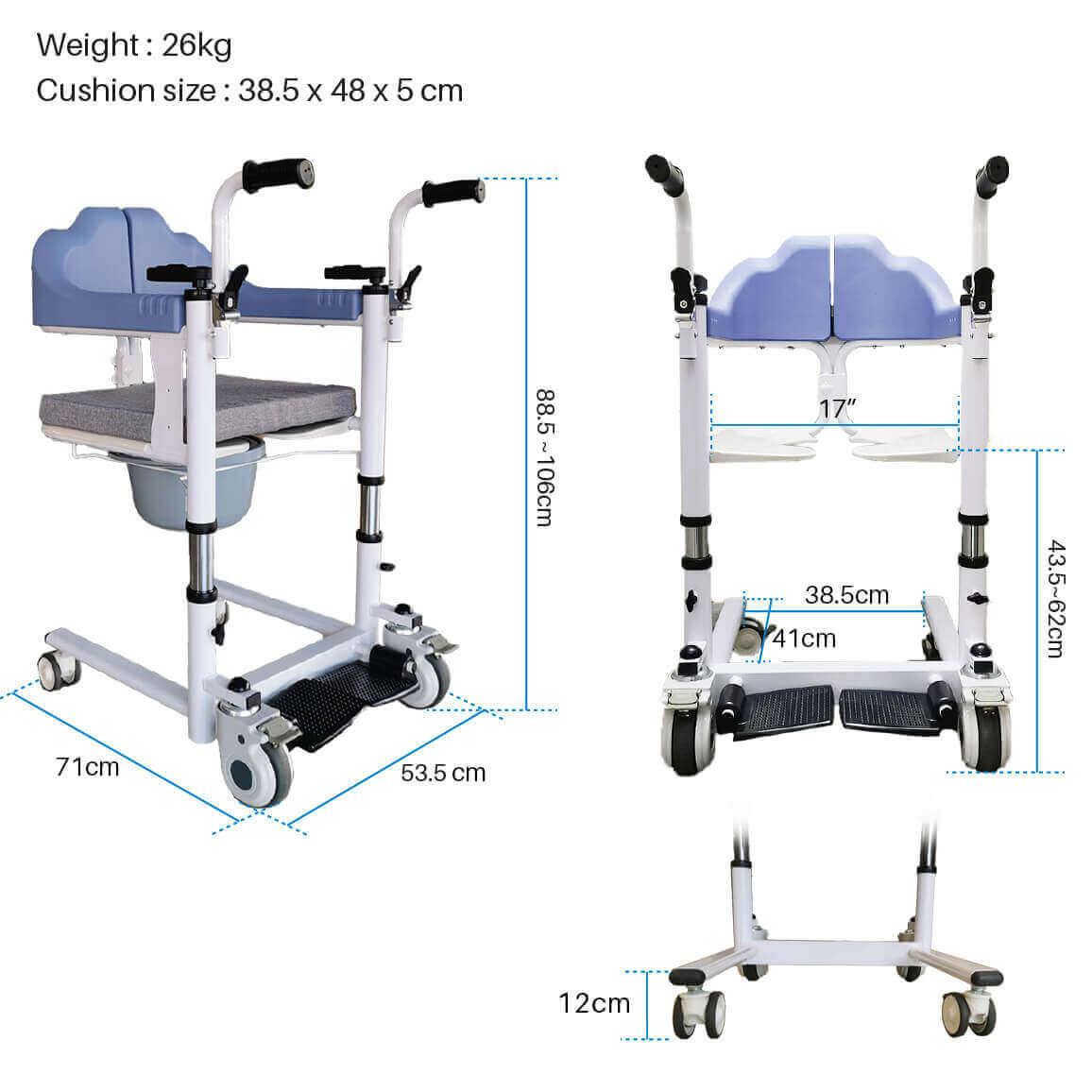 The Multi-Function Commode is a practical, space-saving solution that makes everyday transfers safer and more manageable—ideal for caregivers seeking a reliable and budget-conscious option.