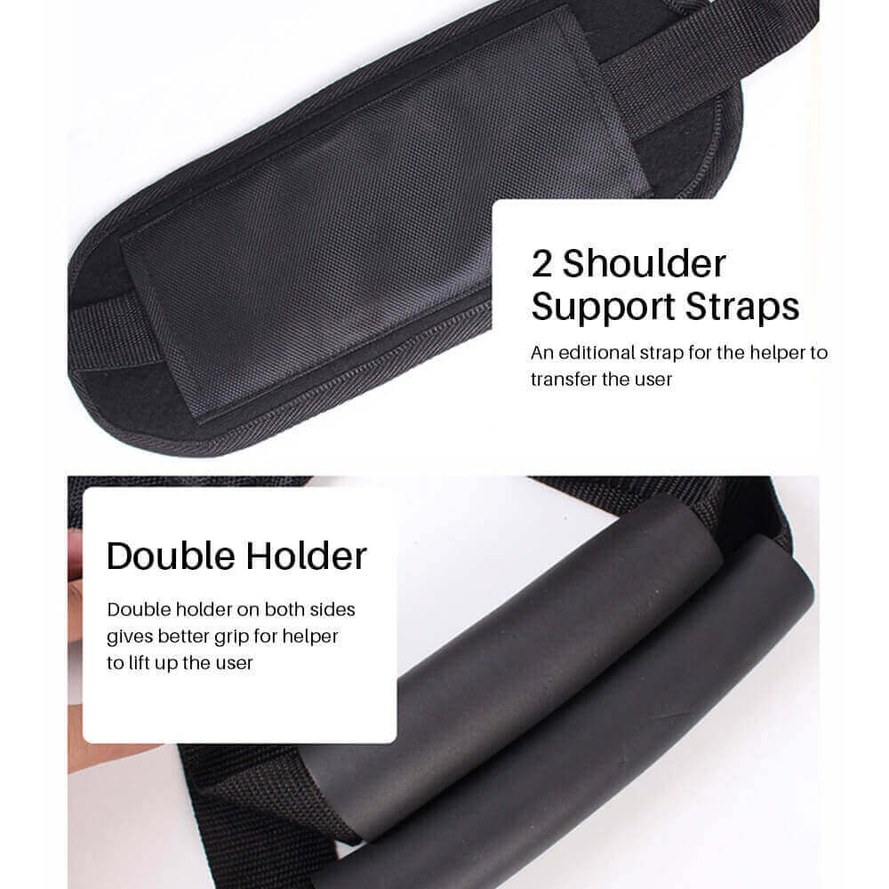 Built-in handles on both sides allow for two caregivers to lift the user with better balance and safety.