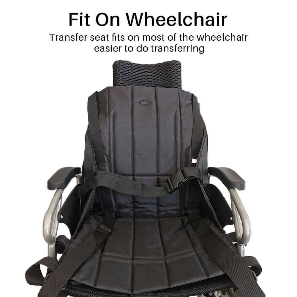 The Portable Transfer Seat is a simple yet effective aid for wheelchair users and caregivers. It allows for safer, more comfortable transfers between beds, car seats, wheelchairs, and even airplane seats, both at home and while traveling.